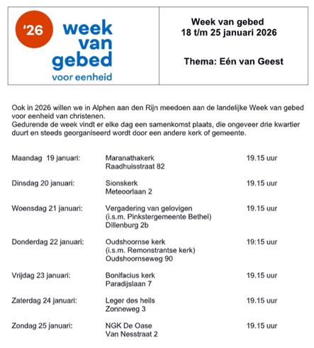 Onderstaande vieringen zijn georganiseerd door een voorbereidingsgroep vanuit de Raad van Kerken Alphen aan den Rijn.